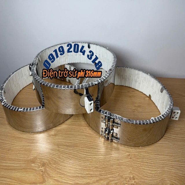 Phi 316mm, Điện trở vòng sứ cho máy ép nhựa công suất cao là một loại điện trở gia nhiệt chuyên dụng, thường được lắp đặt trong máy ép nhựa.